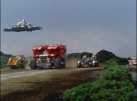 The five DriveMax Zords roll onto the scene, with Dump Driver coming to a park. |