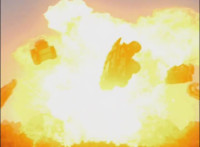 Cropped; final shot's fireball is recolored purple and flared out a bit, and cuts before the flames linger and the Fearcats visibly escape from the debris. |