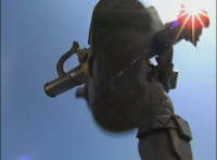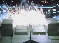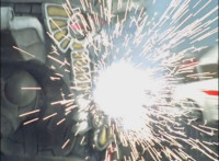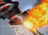 Cropped; cuts prior shot of Flashpoint turning to our right; cuts before Mercury looks to our downward left; cuts a few unused cockpit shots that follow and bazooka fate is changed with original footage. |