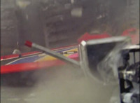 Flurious' Robot fires its bazooka forth, bursting upon Crane & Shovel Drivers. |
