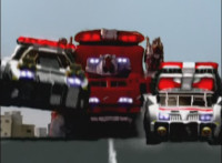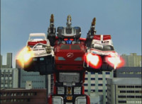 And as the sirens of the Firetruck Zord continue spinning, Rescue Runners 1 & 2 speed leap ahead of it. |