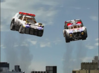 Sonic Streaker fires upon Flurious' Robot, before strafing past just before green bolts of energy hit the Robot, fired by Cement Driver. |