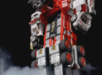 As the Megazord body is lifted up by hydraulic pumps, Speed Driver rolls up the body. |