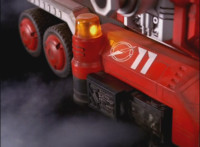 Firetruck Zord drives to our left, as Rescue Runners 1 & 2 race just behind. |