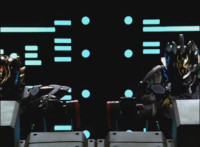 Flurious' Robot's eyes light up and arms start moving, zoom in as we see Mig & Benglo piloting within. |