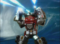 Furious' Robot spark bursts some more before Flashpoint Megazord, shaking up Mig & Benglow within. Zoom into the Megazord as Mercury proclaims something, before gripping the controls, causing the Megazord's forehead cannon to lower, before it reaches up and grips its hoses as well. Flurious' Robot gets back up and reacts, Mercury speaks, then the three nozzles glow bluish as a massive tidal wave appears behind Flashpoint Megazord. Bluish bolts are fired by the trio of cannons forth, striking Flurious' Robot repeatedly, spark bursting the cockpit around the Fearcats, before the whole giant Robot explodes. |