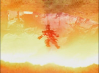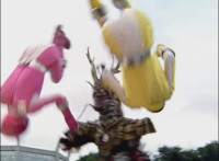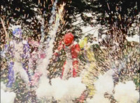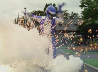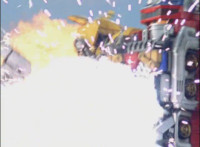 Cropped; end explosion is given purple recoloring and magic sparkle treatment; cuts follow-up of burst of fire dissipating before the Megazords. |