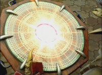 Zoom up to Blothgaar & Moltor, as they approach the side of a cliff, and talk while gesturing over an area of the forest below. Blothgaar aims the compass at the ground, a seal appears, and forms a golden glowing fissure in it. |