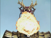Blothgaar is struck by both energy attacks at once, causing him to explode massively. |