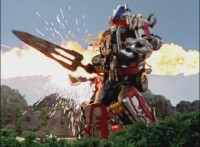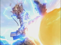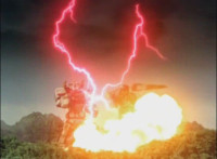 Blothgaar stands ready, zoom out to the two Megazords, as they pose battle ready, then march together forth. Blothgaar spews fire forth between the pair, spark bursting and shaking up both cockpits. Blothgaar motions forth, firing a flash of energy that causes the skies above Flashpoint & DriveMax to turn stormy, and begin to crash down reddish lightning that explodes them both, spark bursting the cockpits. Flashpoint collapses, but DriveMax remains upright. Inside, the Rangers do some talking. |