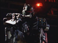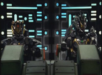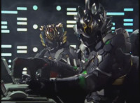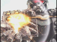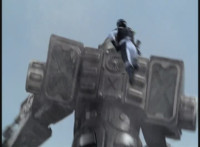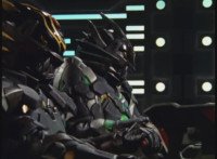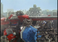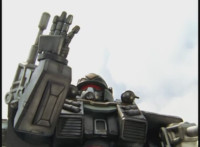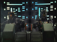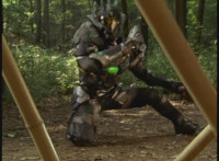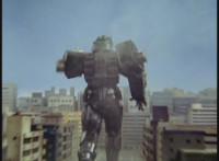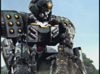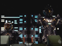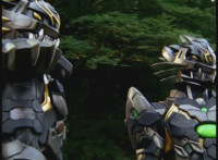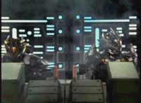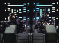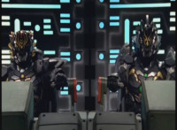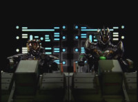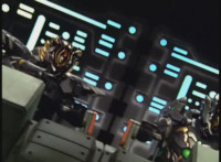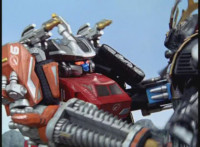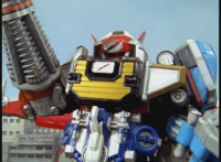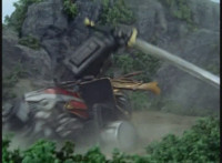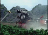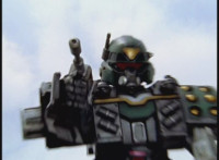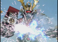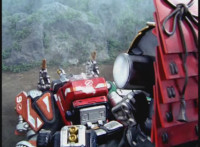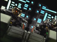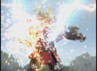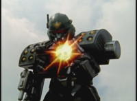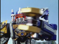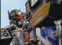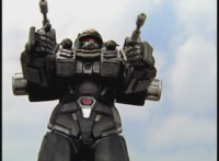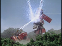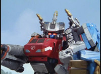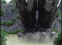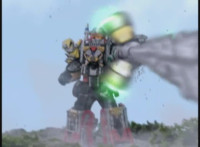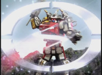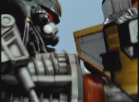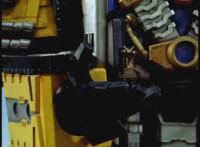 Robot II approaches the downed DriveMax Ultrazord. The Rangers inside talk amongst themselves. Robot II pauses, then readies its right arm cannon. |
