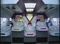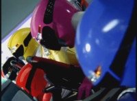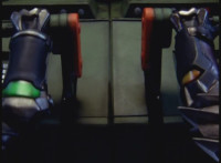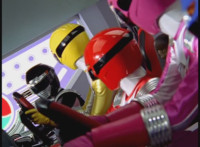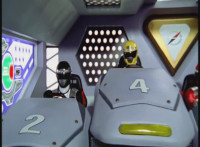 Zoom out from Red as he talks, Black replies, then the Rangers nod, and work their controls, pulling their console cases out and lowering into the floor with them, all leaving Black solo in the cockpit. |