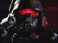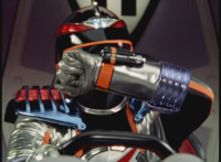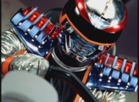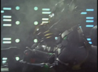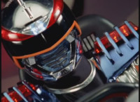 The armored Robot II gets repeatedly struck by blasts, bursting and sparking. Mercury talks triumphantly, the Rangers celebrate until we zoom in on Red noticing the truth. Robot II marches through the smoke, unharmed. Sharp zoom into Mercury reacting. |