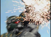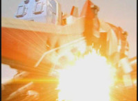 Cropped, except shot 2 is squeezed; cuts end before Robot II sparkily strikes Flashpoint on the back; NZ replaces follow-up cockpit shot of Blue. |