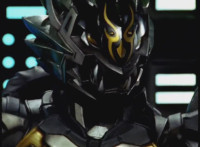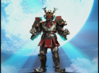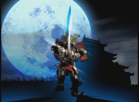 Mig joins Benglo in the cockpit. Robot II opens its right hand, and the magical samurai armor is in its palm. It glows golden, and suddenly grows and attaches to Fearcats' Robot II, creating some kind of upgrade they couldn't be bothered to name. Robot II with this added armor poses in front of the moon. |
