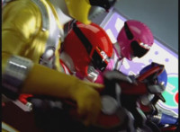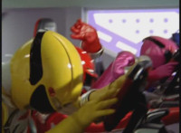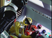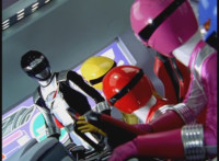 Cropped; cuts follow-ups of Ultrazord posing, the Rangers talking in the cockpit and the camera focusing on the lack of Black. |