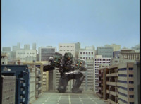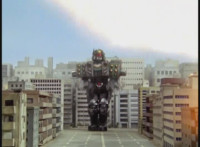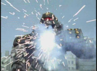 Cropped; cuts follow-ups of Robot II staggering away from the downed Ultrazord, the Rangers reacting, then Robot II acting disoriented. |