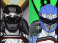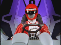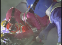 Mercury sits up and talks in his cockpit during closer zoom in. The Rangers in their cockpit appear disappointed that they didn't die today. |