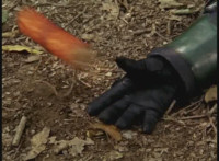 Cropped, except shots 1, 4, 5 are squeezed; cuts shot 2 to remove fireball impact of fiery energy; cuts shot 3 to remove Rangers looking suddenly to our right; cuts final shot before final impact explosion. |