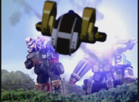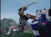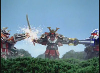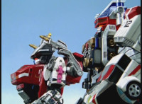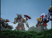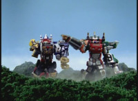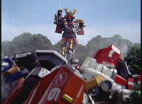 Cropped; recycled, per source; final shot is an original US/NZ composite of Sentai shots; cuts follow-ups of both Megazords posing. |