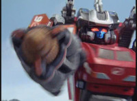Squeezed; cuts follow-ups of Mercury talking, then piloting Flashpoint in using the DriveMax Saber to sparkily slash into Robot II a few times. |