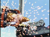 Shovel & Drill sparkily strike Armored Robot II practically at once. Fearcats are shaken up, but Mig hits the lever, and Robot II breaks out of Flashpoint's hold. |