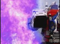 Between the two Megazords, Robot II sparkles, crackles, and as the Fearcats jump ship, it suddenly explodes massively, destroying it. Flashpoint then walks through the lingering purple flames as DriveMax turns around and poses triumphantly. |