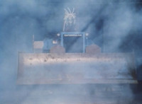 Recycled; plays in reverse; cuts follow-ups of trio blasting the bulldozer with their lasers; fades out to next shot. |