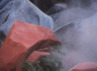 Hunter AV rolls forth, Green nod-talks, then grips both controls, grabs a boulder with the AV's pinchers, then flings it at Ghoulum, who gets bonked by it, before it lands on his foot, causing him to hop on one leg as he grips his injured foot, writhing. |
