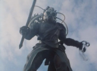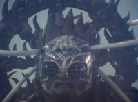 Ghoulum finishes rising up in his new gargantuan mode, as Noxic's head floats up and attaches to his forehead. |