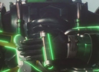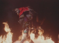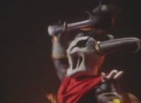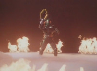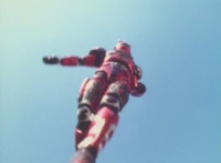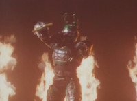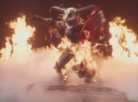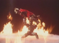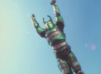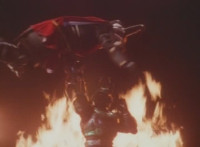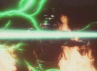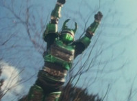 There's an additional spinning shot cut between shots 12 & 13; Mace Warrior is set on fire digitally in shots 15 & the final one; transitions out; cuts follow-ups of Green posing in a green dimension as the monster explodes massively behind him. |