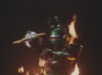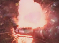 Cuts follow-ups of the two Borgs pausing their travels then approaching the flames. |