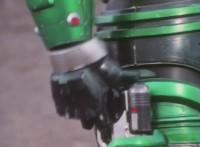 Follow-up shots of them unholstering Sonic Lasers replaced with a US shot of Green pulling out his neon pink US prop version. |