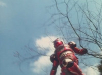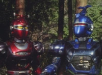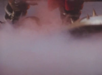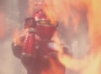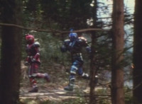 Blue & Red spray ice mist from their Sonic Lasers at the forest fire, putting some of it out. They then go to another area, and resume the same manuever. |