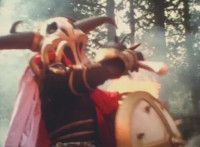 Blue is about to spray another fire, when he pauses and turns to see Mace Warrior bashing his mace at him, sparkily slashing into the Borg, Red also passing by to get hit too. Blue gives Mace Warrior a kick, then gets sparkily struck again by the monster. |