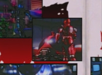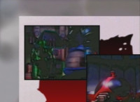 Recycled, except for the final shot; altered to fit comic panels on a blood-red background until during shot 2. |