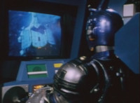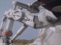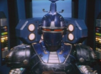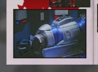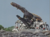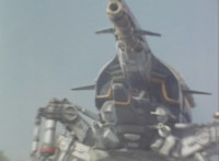 Gargantis' back folds apart, zoom in on Blue talking, before Hunter & Stinger AVs leap off the ground to join Striker in being airborne. Blue watches closely on his monitor screen as they land on Gargantis' back, locking in, as Gargantis continues to crawl forth. All three Borgs land inside the large cockpit together, Blue grabbing controls, as Gargantis trods past us. The three Borgs nod in unison, before Blue thumbs both control joysticks. Gargantis stops walking, legs bear down. |