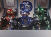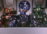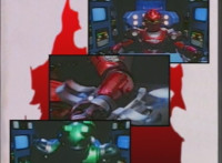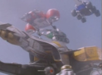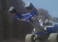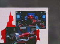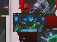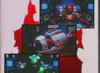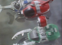 Blue nod-talks, then grips the controls and pulls them out, causing the door before his Blue Stinger AV to open, then roll out from it. Green nod-talks, then grips the controls and pulls them out, causing the platform to lower and the Green Hunter AV to unsnap then roll out from the base. Red nod-talks, then grips the controls and pulls them out, causing the roof to open so the Red Striker AV flies straight up. |