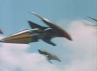 Four Magnavore Jet Fighters fire lasers upon Striker AV, missing it entirely. as it dips below, allowing the four Magnavore Jet Fighters to pass over. |