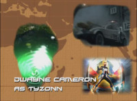 Lower Africa inset: Tyzonn morphs, followed by turning into the form of liquid mercury to shield the others. Bottom right, Mercury's morphing sequence. Upper right, the three Rescue Runners roll out from the hangar. |
