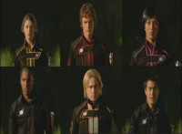 Quick close-ups of each Ranger turning their headlight-lit heads in front of their color. |