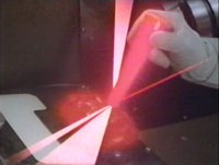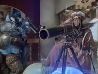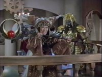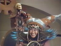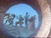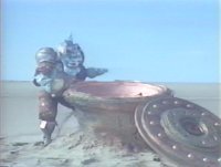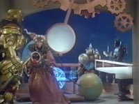 Rita looks from scope, screams, puts leg up on sphere, Mongo & Grock cower. |