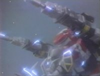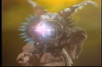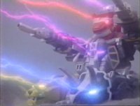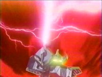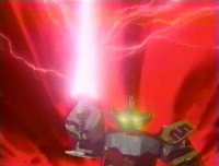 MegaDroid powers up sword and raises it up causing reddish skies. |
