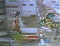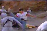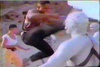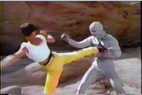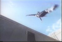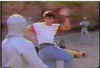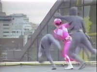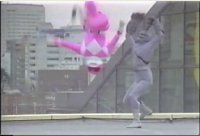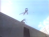 Bladehand Putty strikes, Red ducks under and fights back on rooftop. |