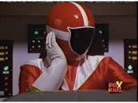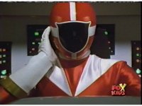 Lightspeed Megazord raises its fists forth, prompting Whirlin' to stop spinning and reacts, while in the cockpit, Red touches his chest and nod-talks. |