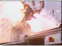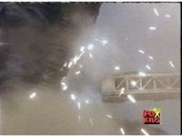 Cuts before Red gives "up yours" gesture with arm. Cuts follow-up shot of wrecked car. |