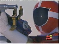 Blue reacts, followed by Red, who poses battle ready. Whirlin' talks, then the Batlings pull out their dinky swords and charge forth, prompting the Rangers to change their Rescue Blasters to Rescue Baton modes and charge forth in return. |