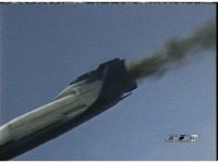 The shuttle continues to fly through the twister of smoke and debris. |