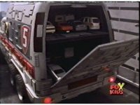 Med Rescue backs up to the four rows of parked traffic, Pink then lowers the ramp into her Zord. |