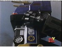 Pyro Rescue transforms into component mode, Red grips controls, Ladder Arms gripping the legs section, lifting it up and sliding down into place. |